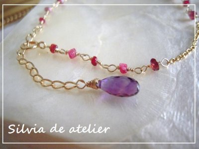 AAAランクの小さなレッドスピネルをワイヤーで繋げた