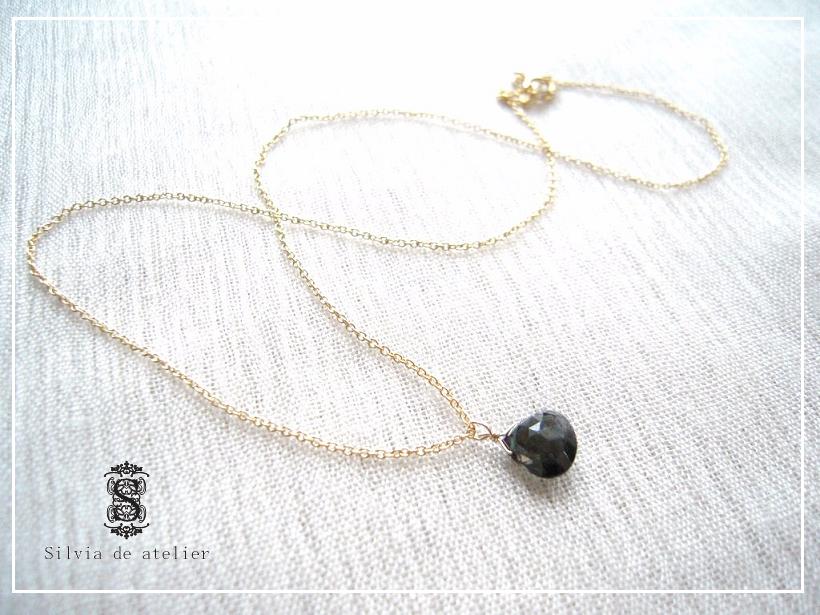 濃いダークグレーカラーのトルマリンの一粒ネックレスです