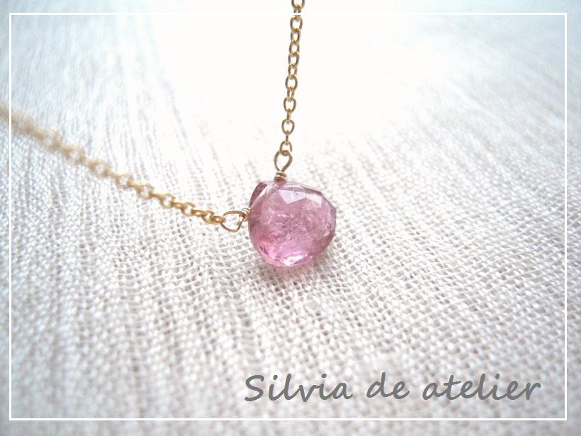 淡いピンクカラーのトルマリン一粒ネックレスです