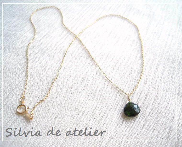 濃いダークグリーンカラーのトルマリン一粒ネックレスです