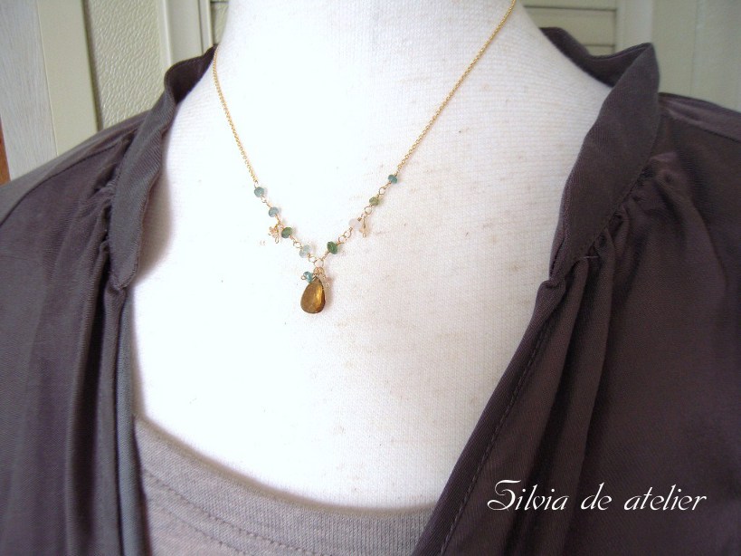 大粒ウィスキークォーツをメインにしたデザインネックレスです