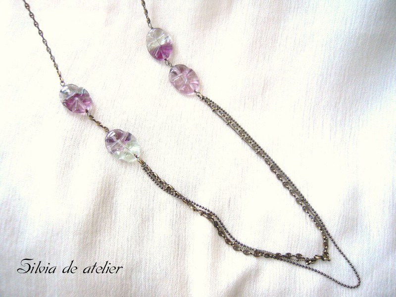 パープルフローライト ウェイブディスクロングネックレス [N0445]