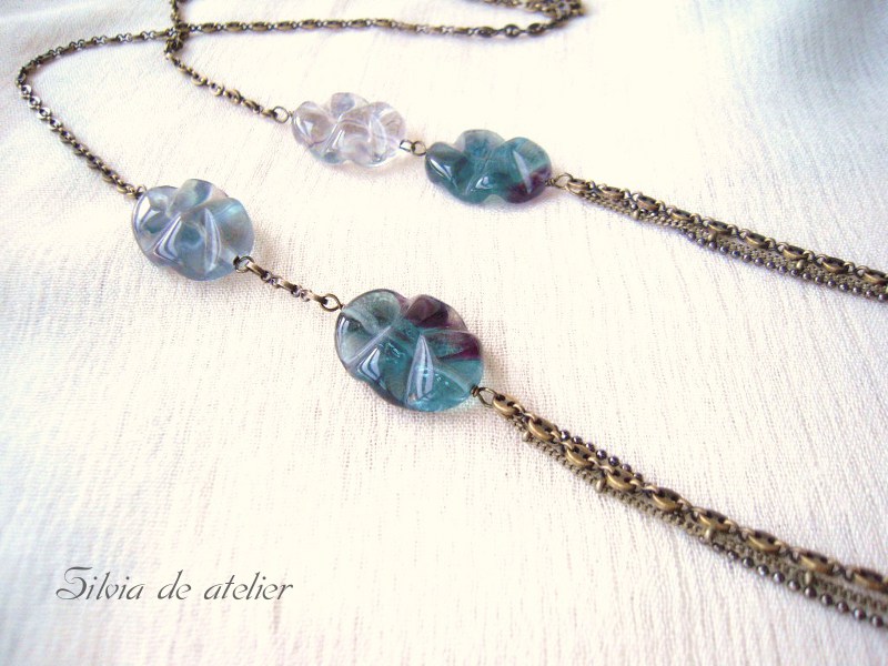 ブルーフローライト ウェイブディスクロングネックレス [N0446]