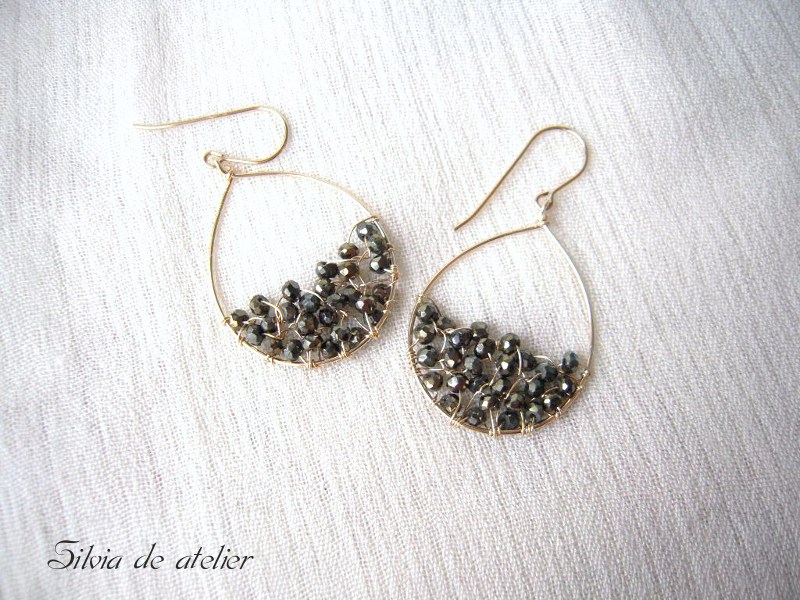 ワイヤーで編み込んだティアドロップ型ピアスです