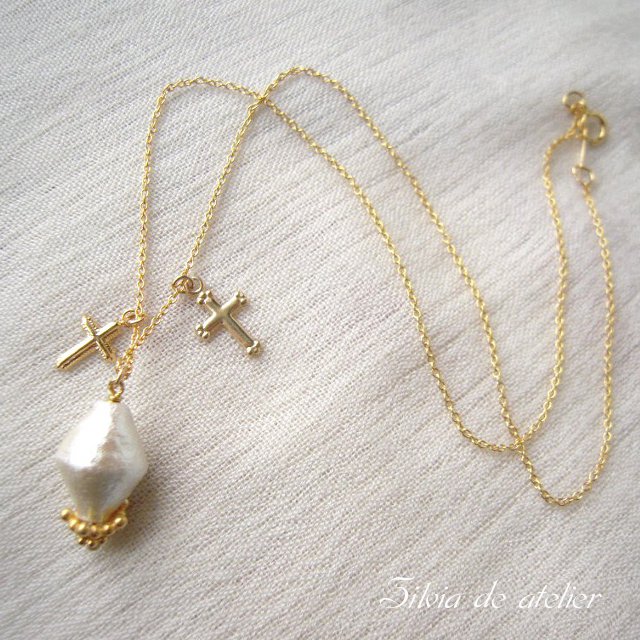 さらりとつけていただきたいコットンパールコマ型のネックレス