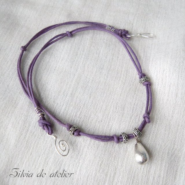 Silver925ドロップ パープルコットンコードネックレス [N0452]