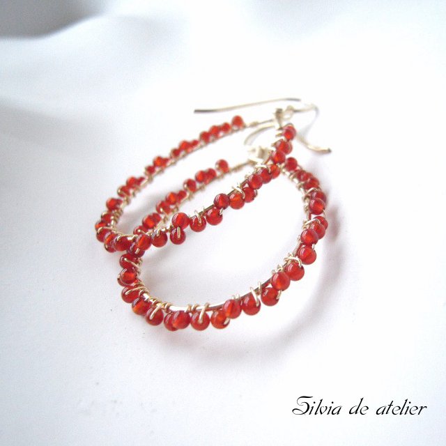 朱色系の赤のアゲートは大人っぽく肌なじみも良いです