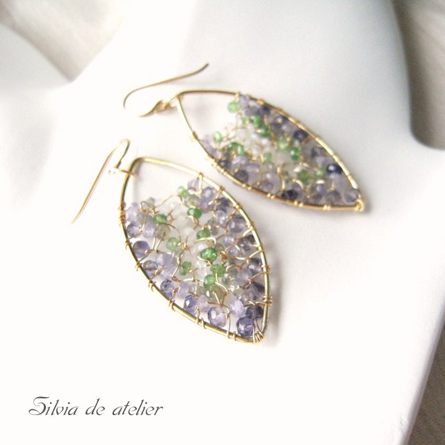 ピーコック アイオライト×アレキサンドライトワイヤー 14kgfピアス [P0358]