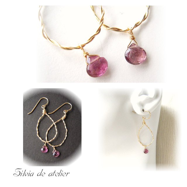ピンクトルマリンマロン ティアワイヤーピアス [P0361]