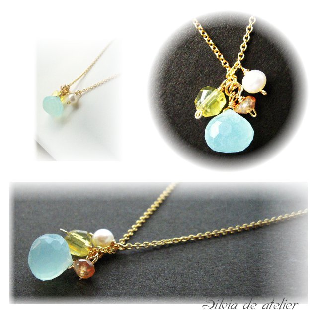 アクアマリンカルセドニーオニオンの14kgfネックレスです