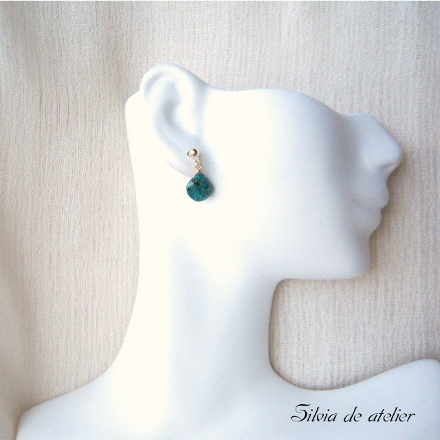 ★レアストーン★クリソコラドロップ 一粒14kgfスタッドピアス [P0373]