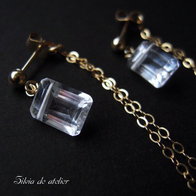 クリスタルスクエアジェムカット 一粒14kgfピアス [P0395]