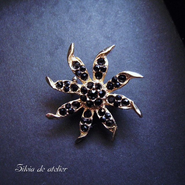 1点もの♪ヴィンテージ 【ブラック】フラワーブローチ [O0091]
