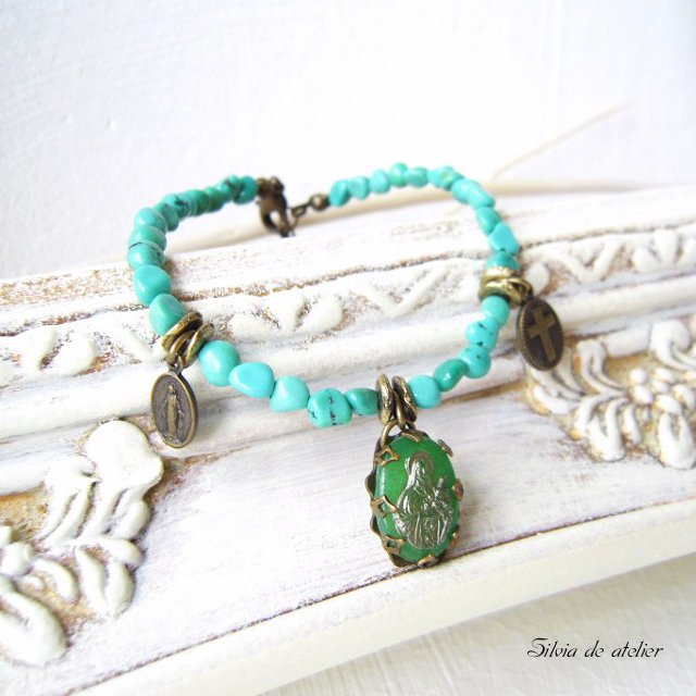 ターコイズブレスレット デッドストックマリアチャーム付き