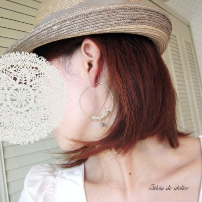 グリーンクォーツキャッツアイ×レリーフ 大ぶり14kgf製フープピアス