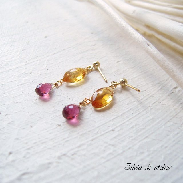 シトリンマーキス×ロードライトガーネット 14kgfピアス