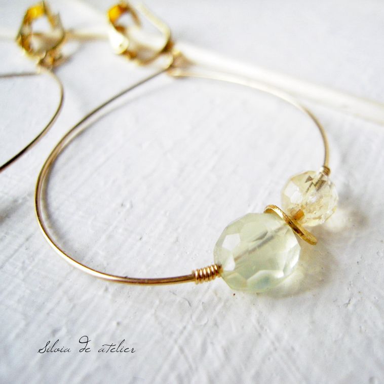 プレナイト ティアドロップフープ ピアス風イヤリング(ピアスへの変更可・無料)
