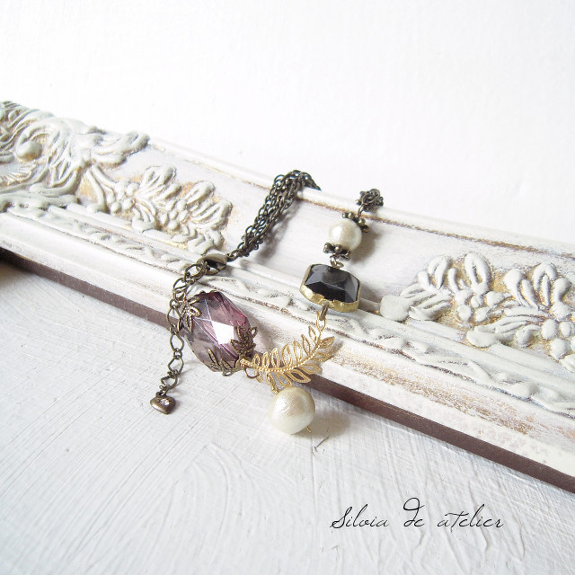 アクリルパーツ×ミリアムハスケルリーフ×コットンパール デザインブレスレット