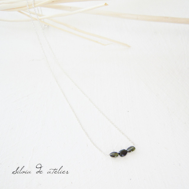 モスグリーントルマリン3石 ラインsilver925ネックレス
