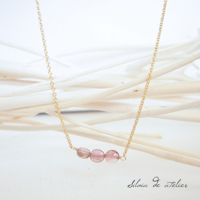 ピンクトルマリン3石 ライン14kgfネックレス [N0725]