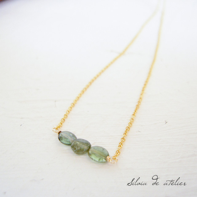 グリーントルマリン3石 ライン14kgfネックレス [N0727]