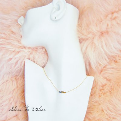 イエロー×ブルー3石 ライン14kgfネックレス [N0731]