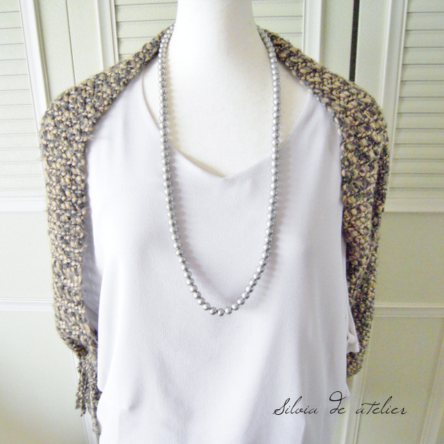 スワロフスキービジュー留め具 グレーコットンパールロングネックレス