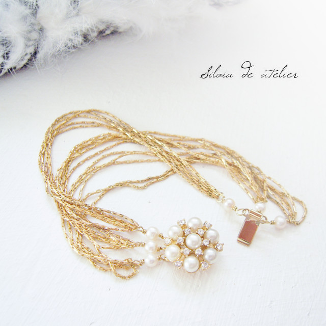 スワロフスキービジュー留め具 15連チェーン ブレスレット