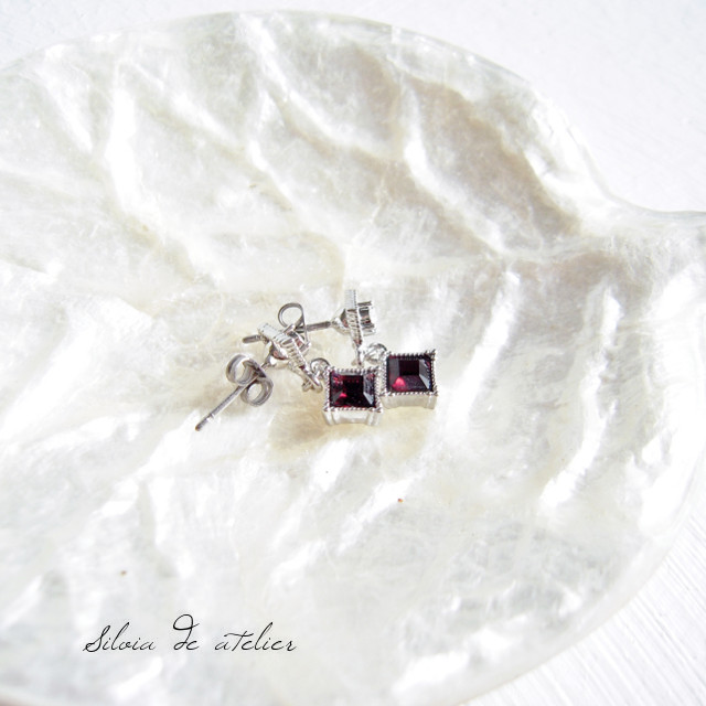 プチピアス・チタンポスト&キャッチ仕様 スワロフスキーシルバーワイン