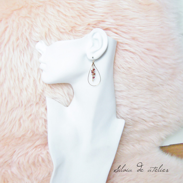 ガーネットフリンジ ティア型フープ 14kgfピアス