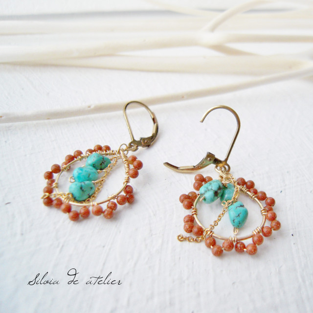 ターコイズ×サンドストーン 14kgfティアフープピアス