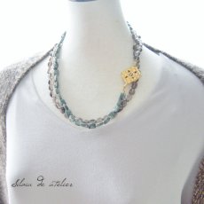 落ち着いた色合いの天然石に華やかさをプラスしてくれていますよ♪