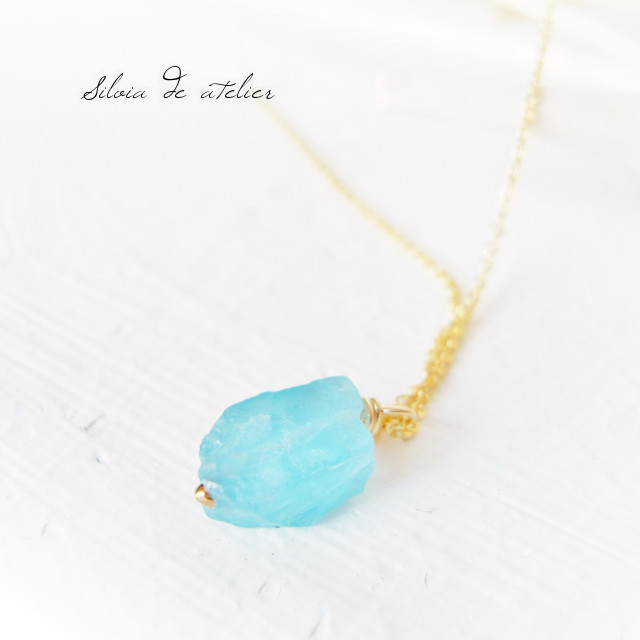 ブルーアパタイト ラフロックタンブル 14kgfネックレス(アジャスター付) [N0832]