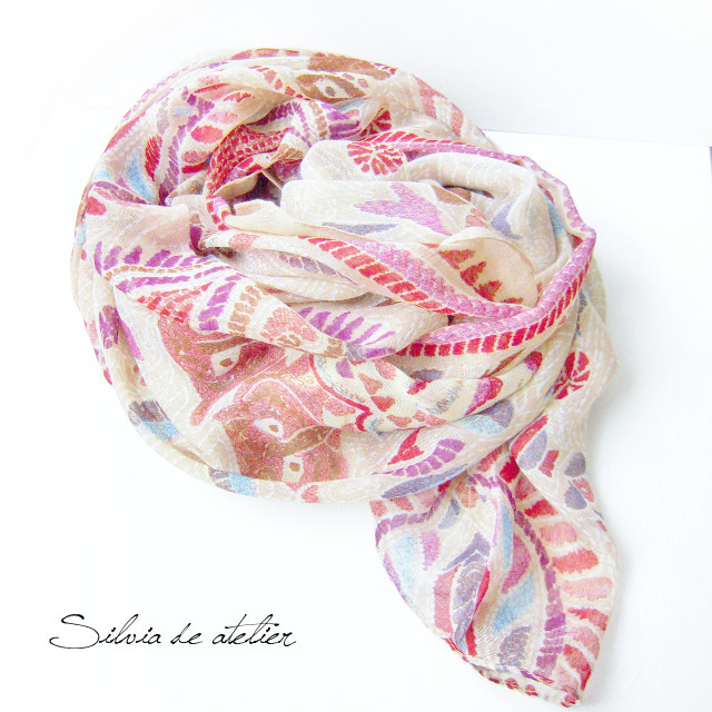 そこにピンク系の色目でエスニック模様が全体的に入っています