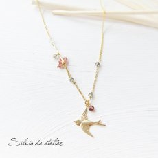 ピンクトルマリン&サファイヤ ツバメチャーム 14kgfネックレス [N0917]