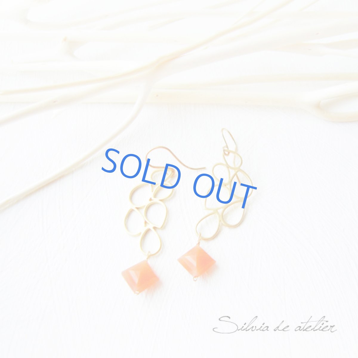 オレンジムーンストーンダイスカット 泡重なるチャーム 14kgfピアス [P0575]
