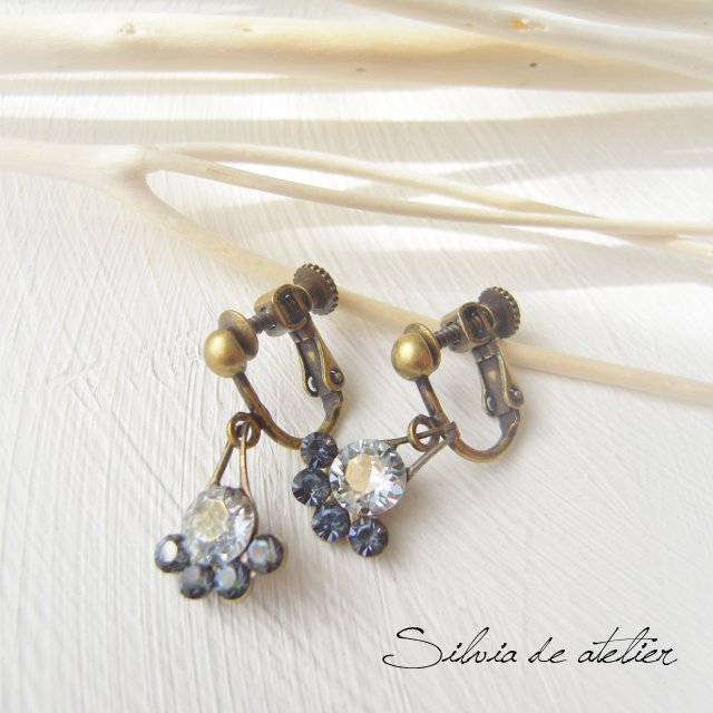 スワロフスキー クリスタルモンタナチャーム アンティークゴールドイヤリング [E0057]