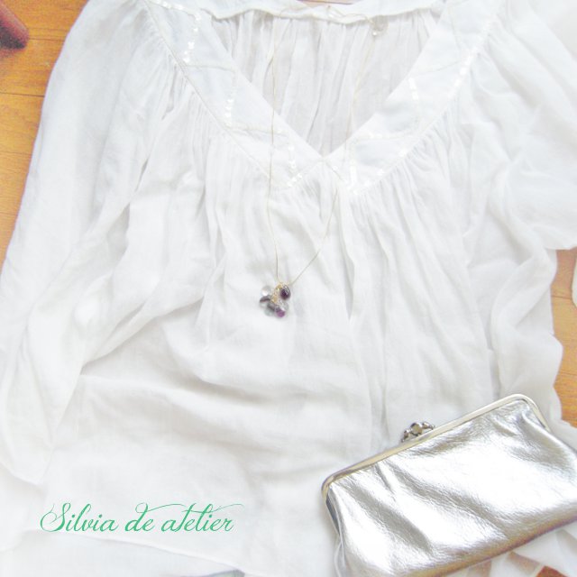 パープル系 バイカラーフローライト ペアシェイプ フリンジ ストリングスチェーン ゴールドカラー ロングネックレス