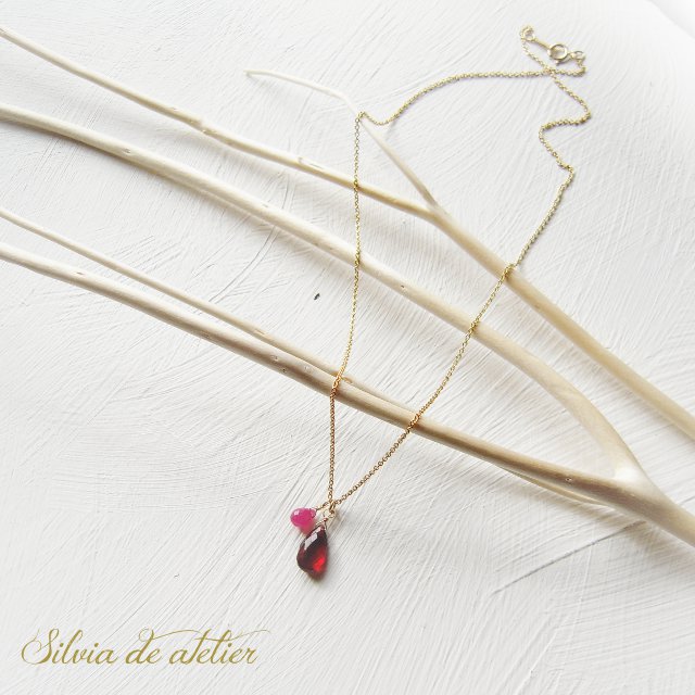 AAA ガーネット ブリオレットペアシェイプ &ルビードロップ 14kgfネックレス