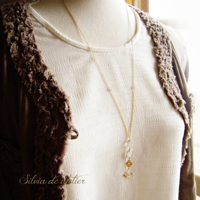 残り1 【HAPPY BIRDシリーズ】フレームストーンムーンストーン Y字 ロング14kgfネックレス63cm