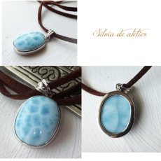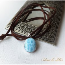 <la mer>ドミニカ共和国産 オーバル型 ラリマー スエード ブラウンコードネックレス [N1350]
