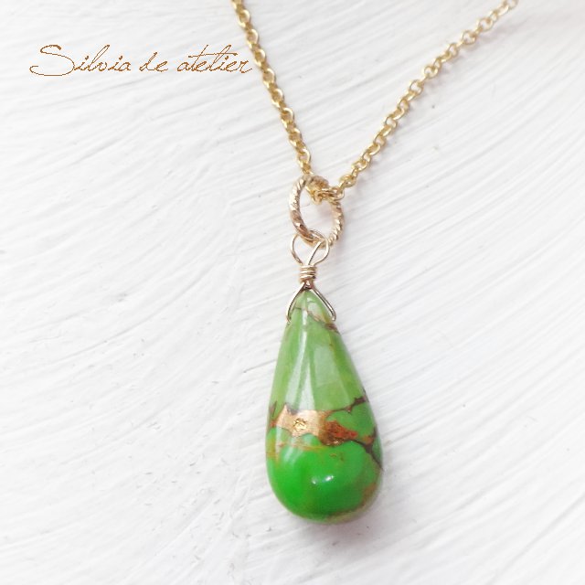 残り1 グリーンターコイズ 大粒 スムースペアシェイプ 約50センチ14kgfネックレス [N1439]