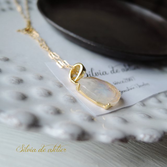 <1点もの・立爪>AAAランク レインボームーンストーン ファンシーローズカット 14kgfネックレス