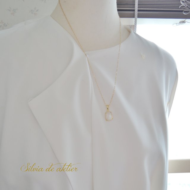 <1点もの・立爪>AAAランク レインボームーンストーン ファンシーローズカット 14kgfネックレス [N1653]