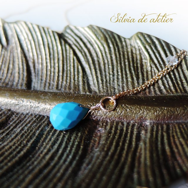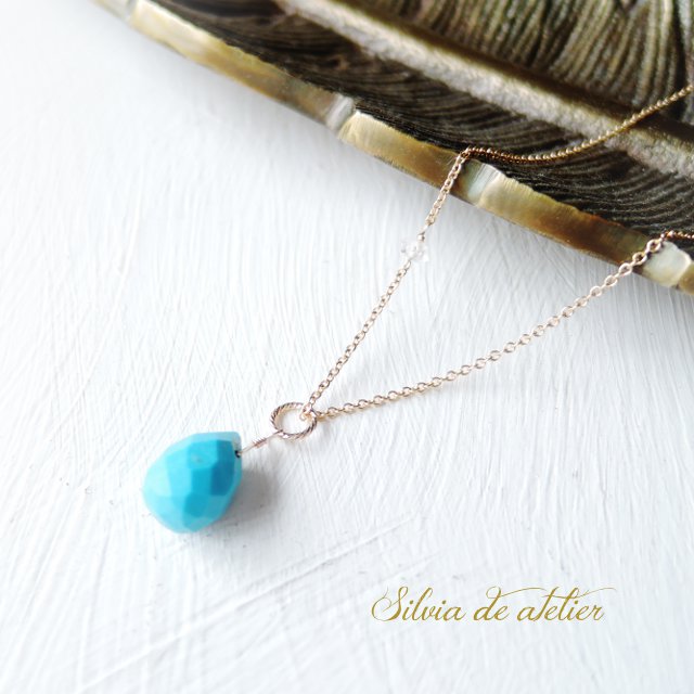 残り5 AAAA アリゾナ産スリーピングビューティー ターコイズ カットドロップ サージカルステンレスネックレス50cm [N1662]