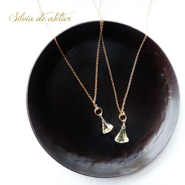 <1点もの・Lサイズ>扇形 レモンクォーツ 一粒ネックレス