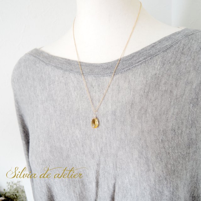 大粒 ゴールデンシトリン ペアシェイプ 14kgfネックレス50cm
