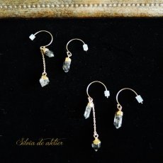 【イヤリング変更可】アフガニスタン産 カーボン入りクリスタル ミニ14kgfアシンメトリー フープチェーンピアス