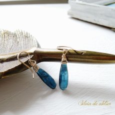 【イヤリング変更可・残り1】モスカイヤナイト 細長ペアシェイプ 14kgfフックピアス [P0801]