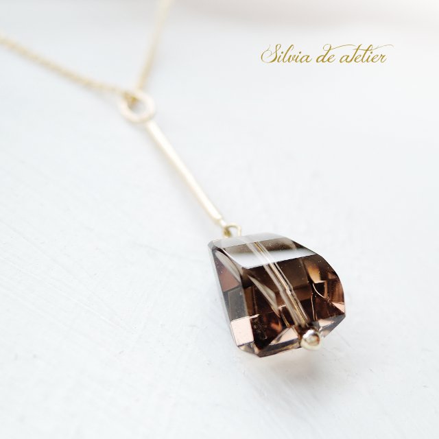 <在庫僅少>ダークスモーキークォーツ ファニーカット 14kgfY字ネックレス